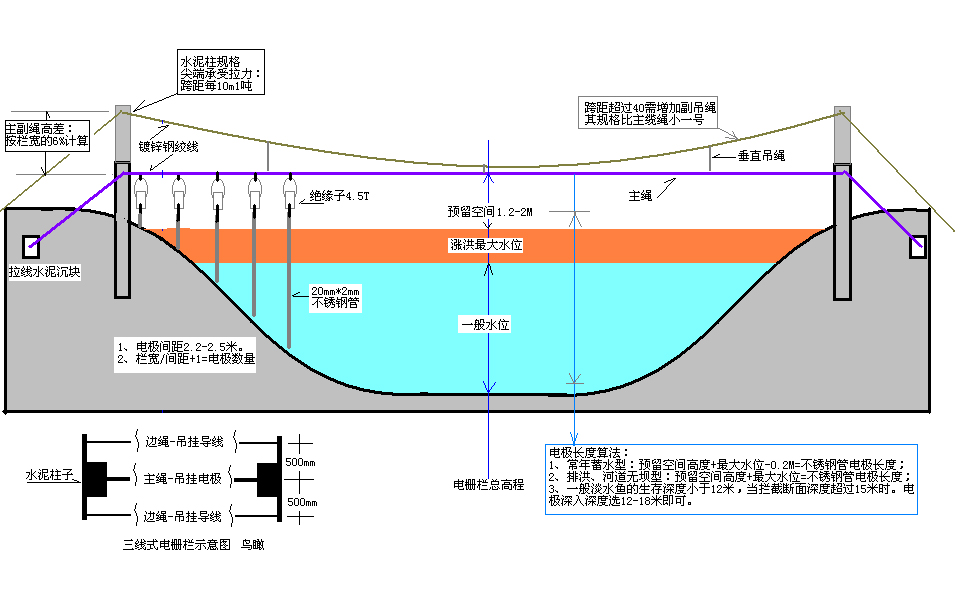 用途: 庫,塘,河流泄洪防魚逃。 優點:與網攔相比 1、不影響正常泄洪 2、適合任何地形 3、攔魚效率高 4、不存在掛、老化問題經久耐用 5、不需要人員管理,一次安裝永不維護 技術指標: 1、脈沖頻率:5---20Hz可調 2、負載能力:最小0.5歐姆 3、輸出電壓:2200Vp—p 4、消耗功率:2kw 5、電源電壓;220V/AC50Hz 6、使用環境溫度-10---50℃ 7、環境濕度:小于80% 8、整機電流:3—10A 9、單機攔魚最大水面幅寬85米 10、攔魚最大水深30米 11、工作形式:連續 12、整機質量:64 KG